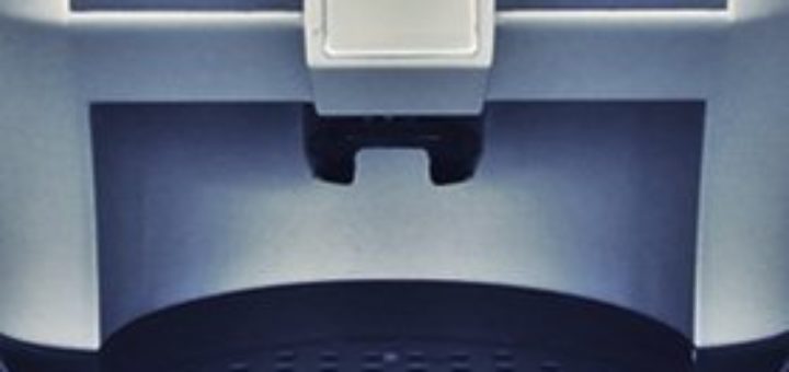 An den Kaffeeautomat war ein Zettel geklebt: Keine Becher.